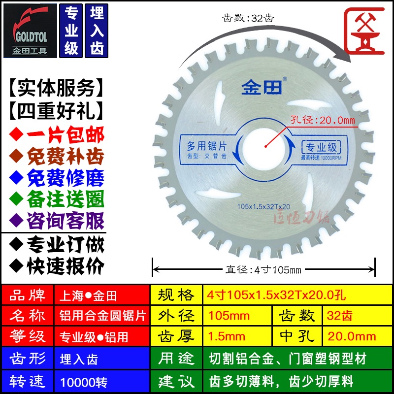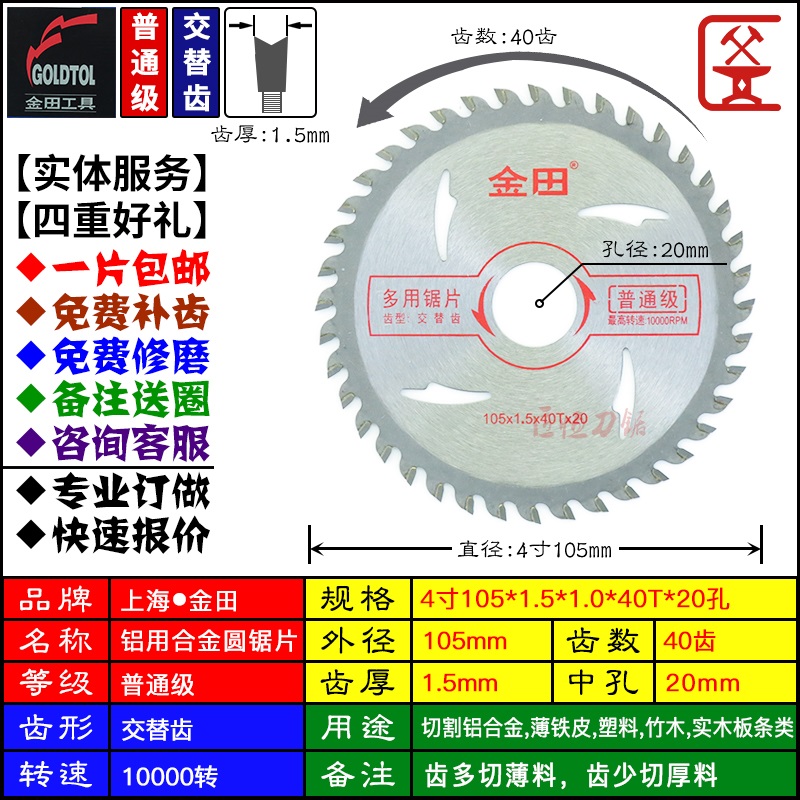 Shanghai Jintian Corner Mill) Cloud stone machine multipurpose cut copper) Iron) aluminum alloy with saw blade 4 inch 105-32 teeth 40 teeth