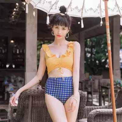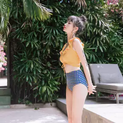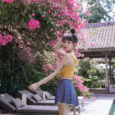 OMOM swimsuit female two-piece three-piece conservative small chest gathering ins Wind Sanya bath suit student swimwear
