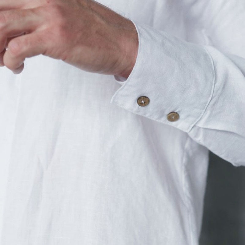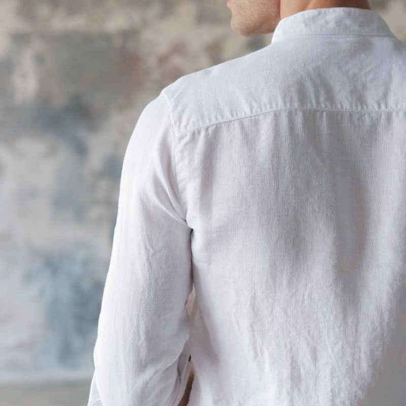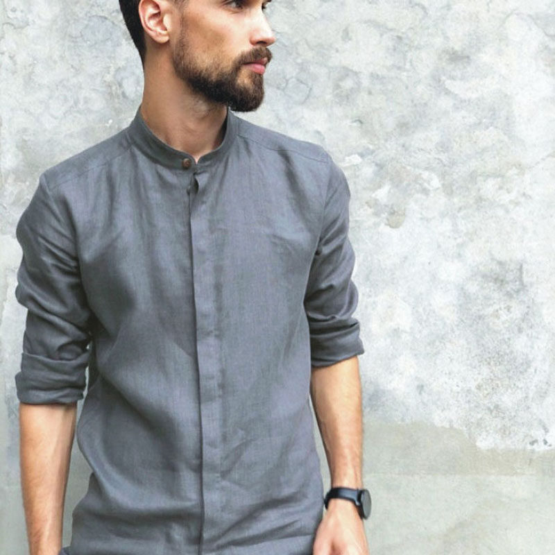 Cloud Deep French Hemp Pure Color Upright Collar Long Sleeve Shirt Washed Linen Foreign Trade High-order Casual Comfort Business Men's Clothing