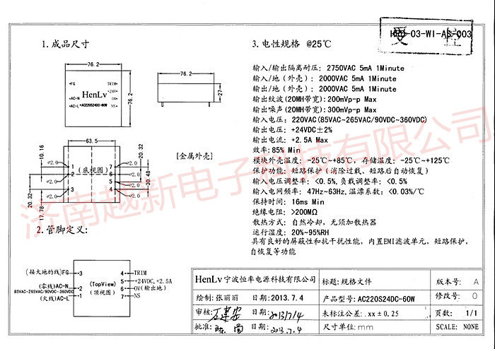AC220S24DC-60W constant rate 220V to 24V 60W HenLv module power supply ACDC power supply module