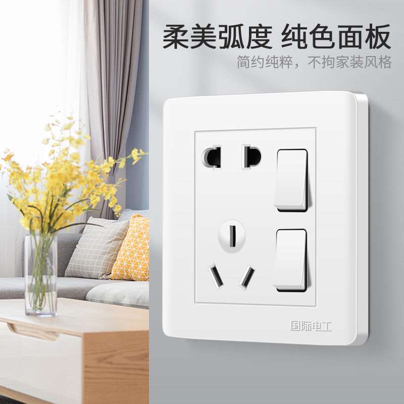 International electrician 86 type switch socket panel household two-open double-cut with five-hole socket two-open five-hole socket