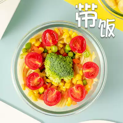Fresh lunch box microwave oven special glass bowl office worker bento box sealed box plus tropical rice bowl round with lid
