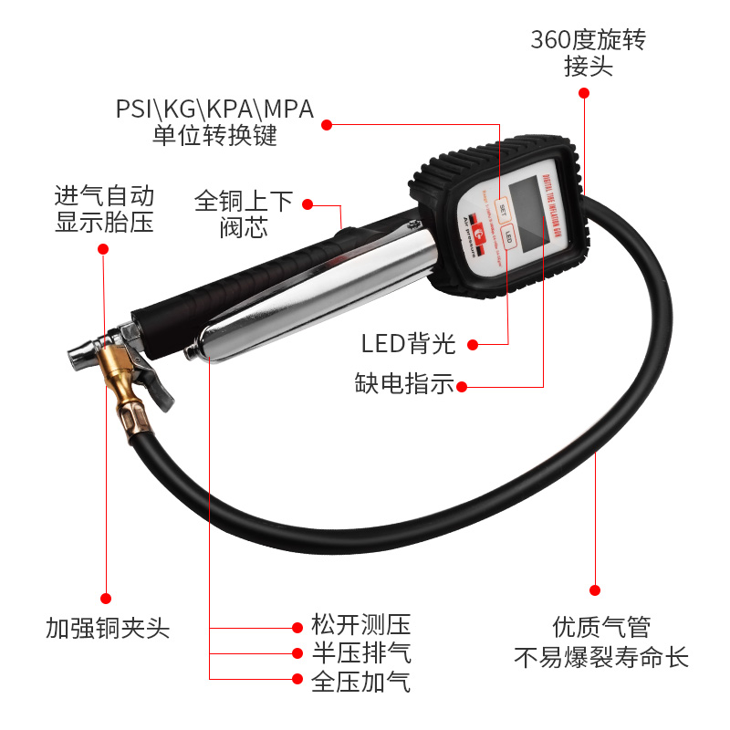 Taifeng Automotive Tyre Tyre Digital Tyre Pressure Meter with Inflatable High Pressure Detector
