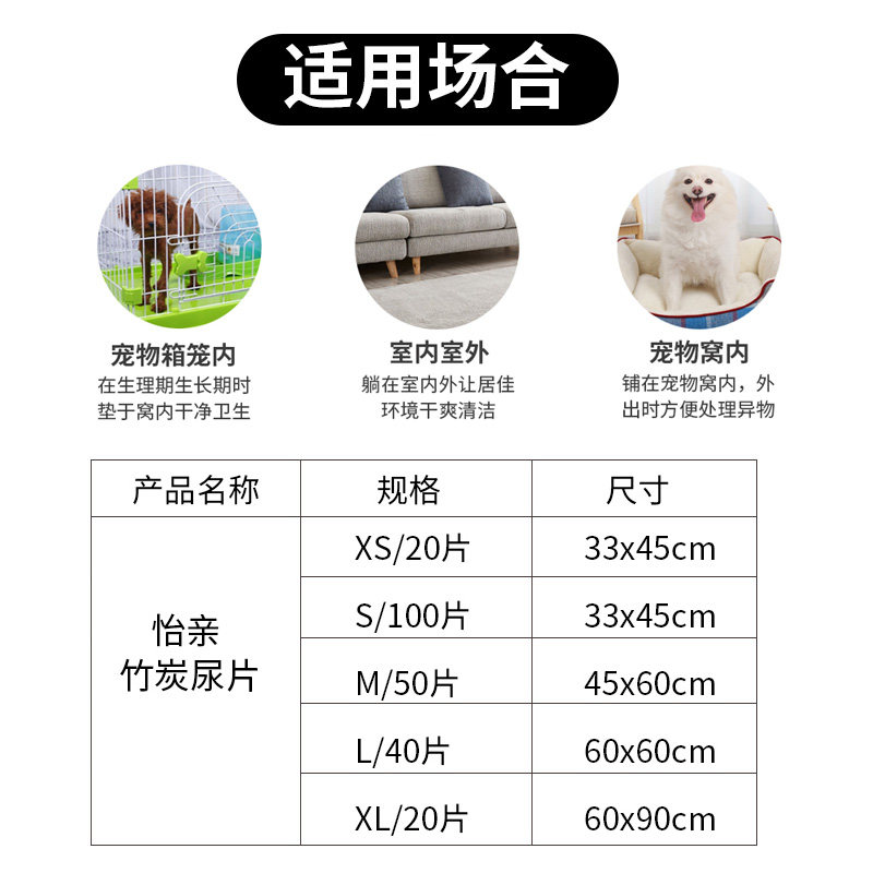 Dog diapers 100 pieces bamboo charcoal thickened deodorant Yiqin Pet Cat and dog diapers Dog diapers pad dry dog diapers