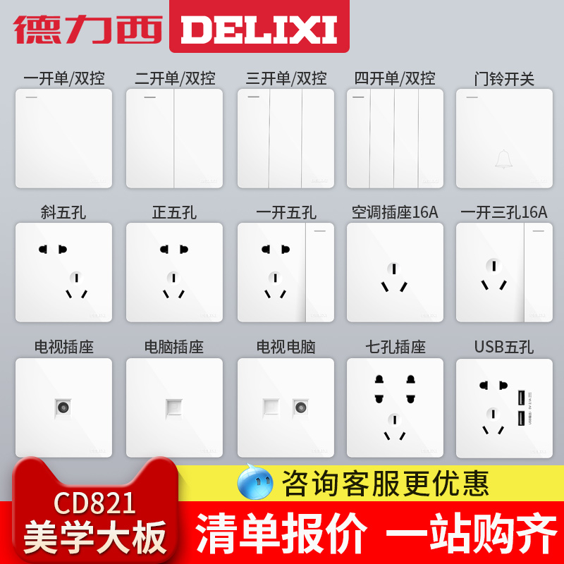 Misplaced five-hole oblique five-hole positive five-hole seven-hole socket One open five-hole two open five-hole three-hole 16A One open three-hole 16A One open single control One open double cut One open multi-control two open single