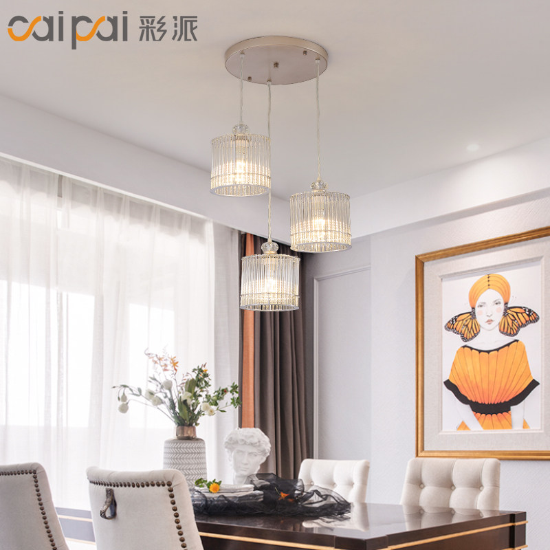 2022 New Dining Room Bar Table Art Lamps Dining Room Dining Room Light Creativity Postmodern Light Lavish Crystal Chandelia Three Heads