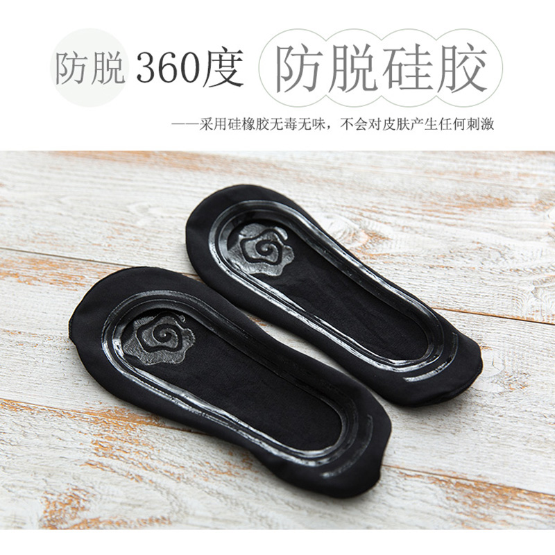 Shallow mouth invisible socks women's autumn and winter ice silk silicone non-slip can not fall off with Korea cute spring and summer thin lace boat socks