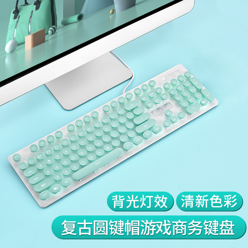 Wired Keyboard Mute Game Eating Chicken CF Mechanical Hand Feel Computer Desktop Notebook Hair Backlit Punk Retro