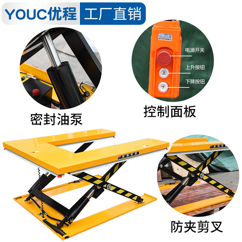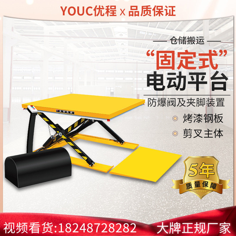 UChing stationary electric hydraulic lifting platform scissor fork hydraulic lift small electric loading and unloading lift