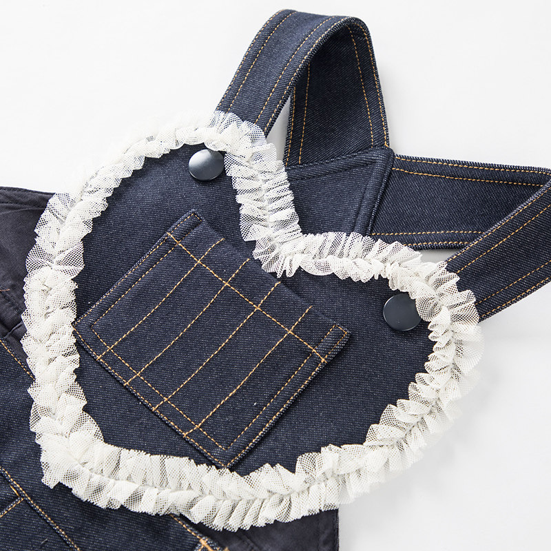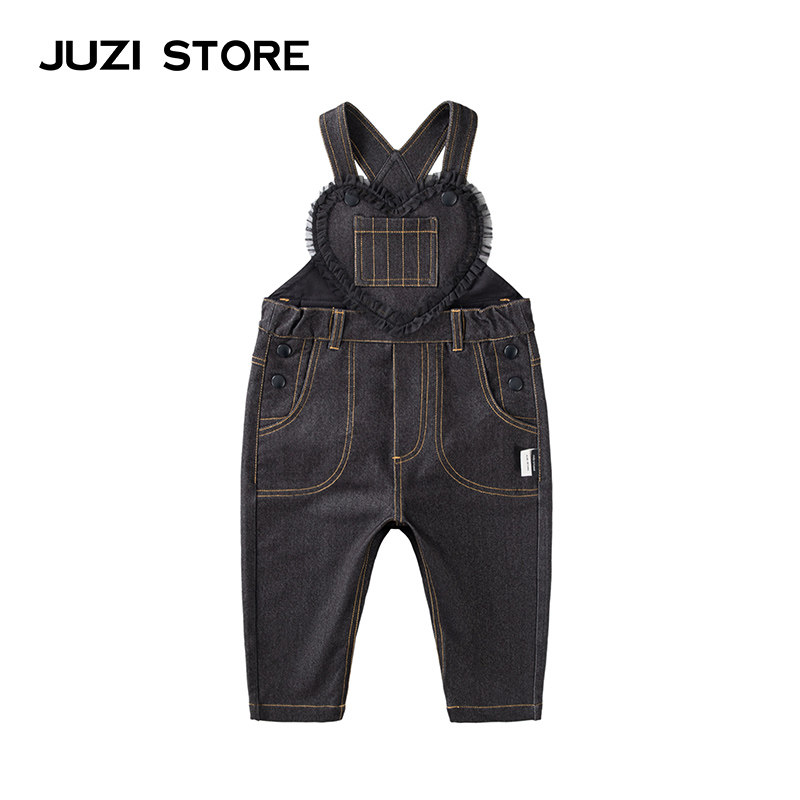 JUZI STORE children's wear 2019 spring knitted denim sweet mesh bow overalls girls 1830714
