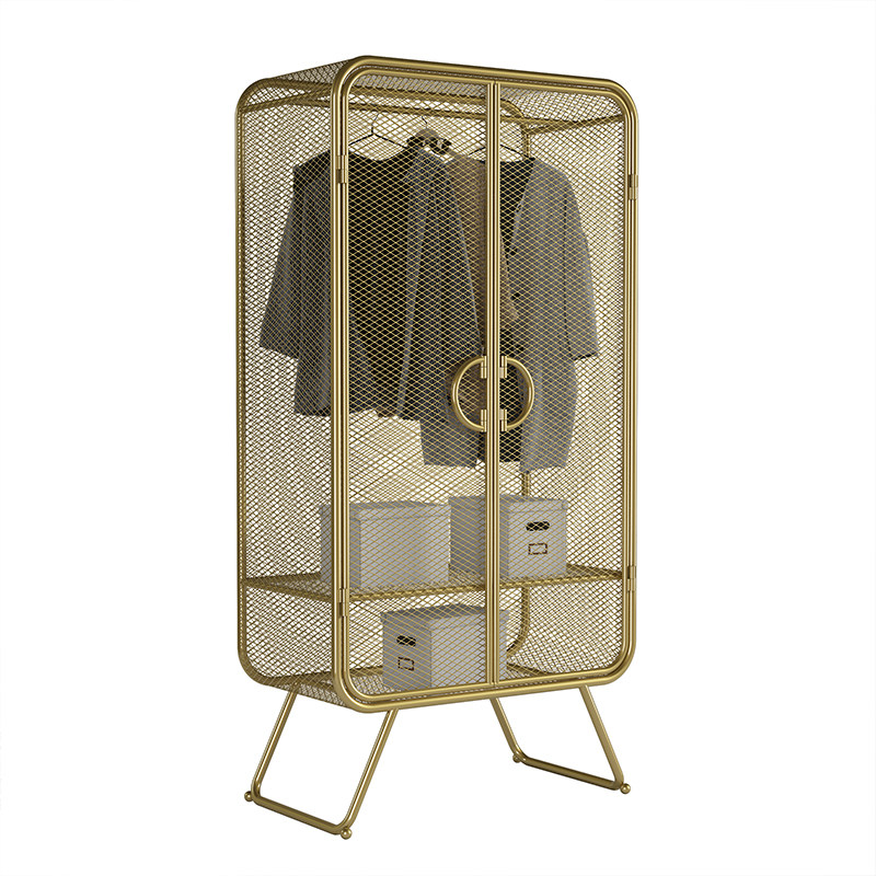loft Iron Wardrobe Nordic Golden Barrier Wire Single Door Wardrobe Red Unit Clothes for a Red Second - hand Closet