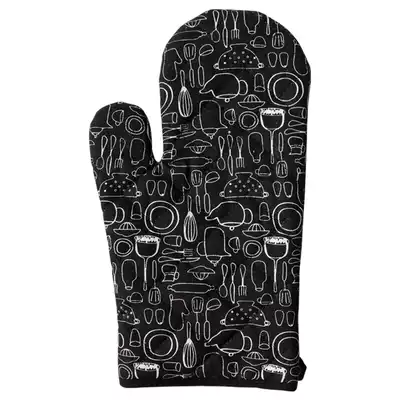 (One) A -- (white bread windmill) (one) B -- (navy blue simple stripes) (one) C -- (black kitchenware pattern) (one) Yuyue gloves