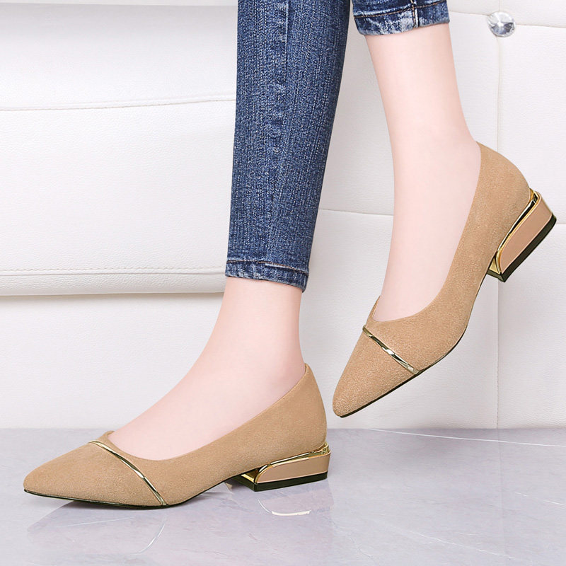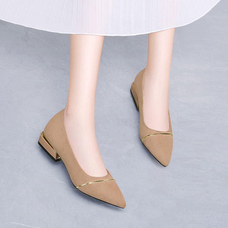 Shallow shoes women flat 2021 new autumn shoes women Joker pointed professional work shoes black small leather shoes