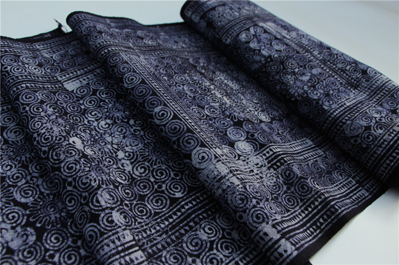 Deer Shu Hutchison for Miao Handmade Crayon Dyeing Hemp Cloth of the Wax Dyeing Cloth Old Batik Rolls Cloth C647