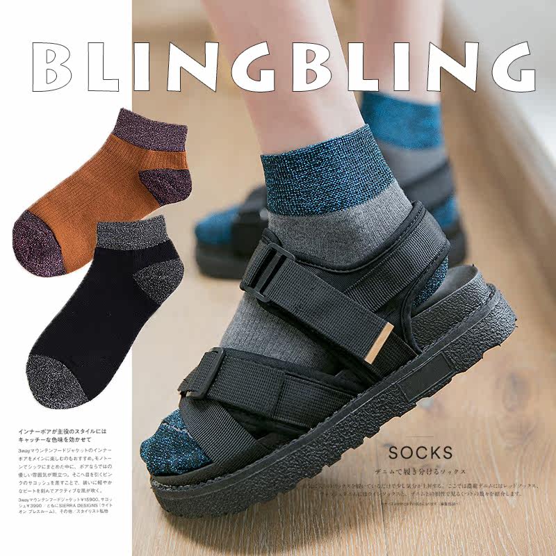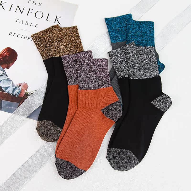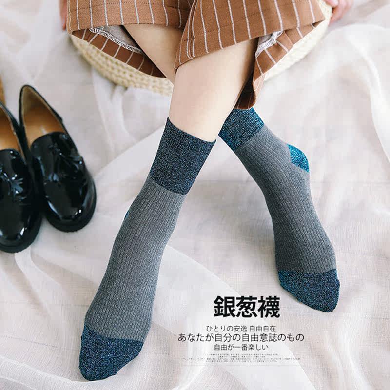 Silver Onion Bubble Socks Women's Medium Tube Japanese Splicing Retro Korean New Product Personality Breathable Gold and Silver Bright Silk Wind Women's Socks