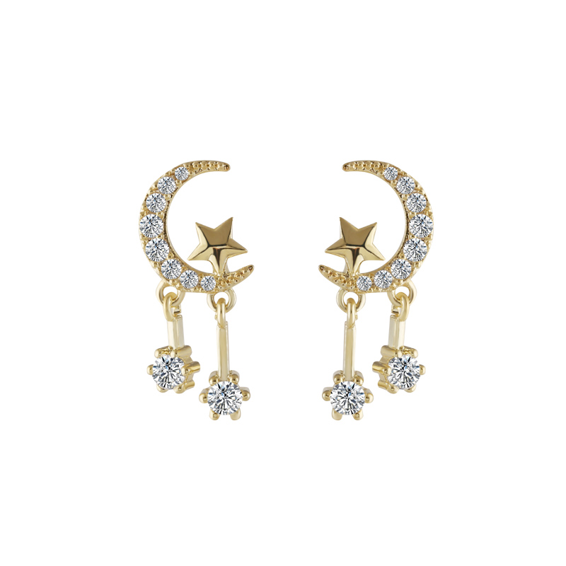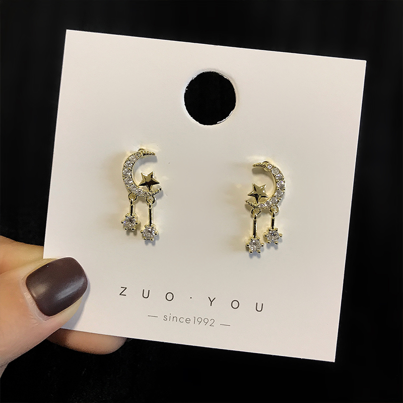 Gentle Teenage Stars Moon Short 925 Pure silver earrings Femininity Korea 100 Lapped Asymmetrical Earrings Ear Clip R443 -Taobao