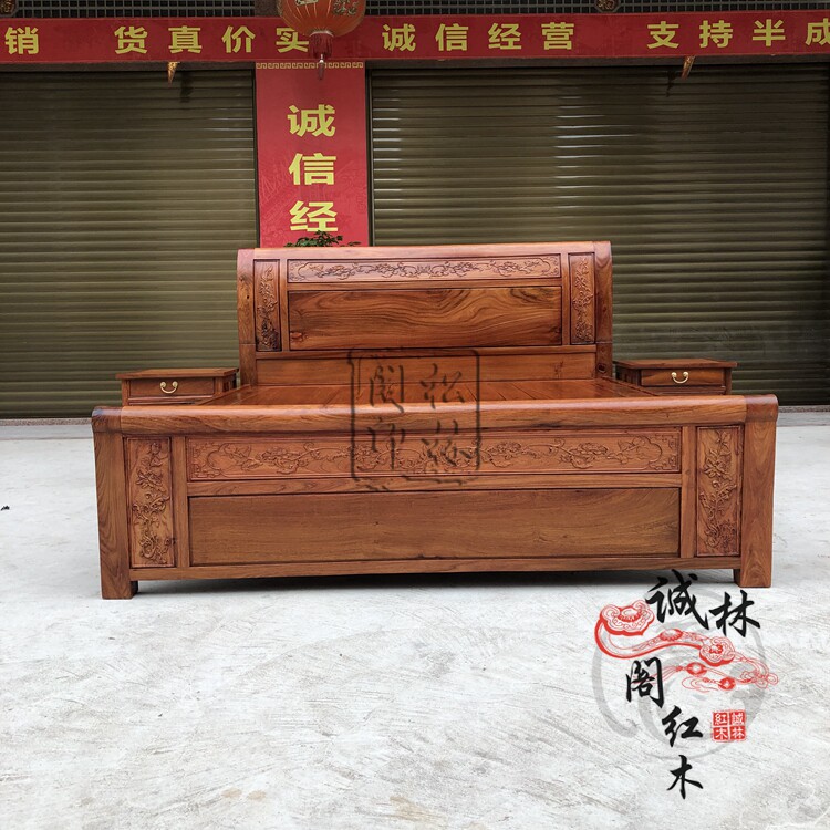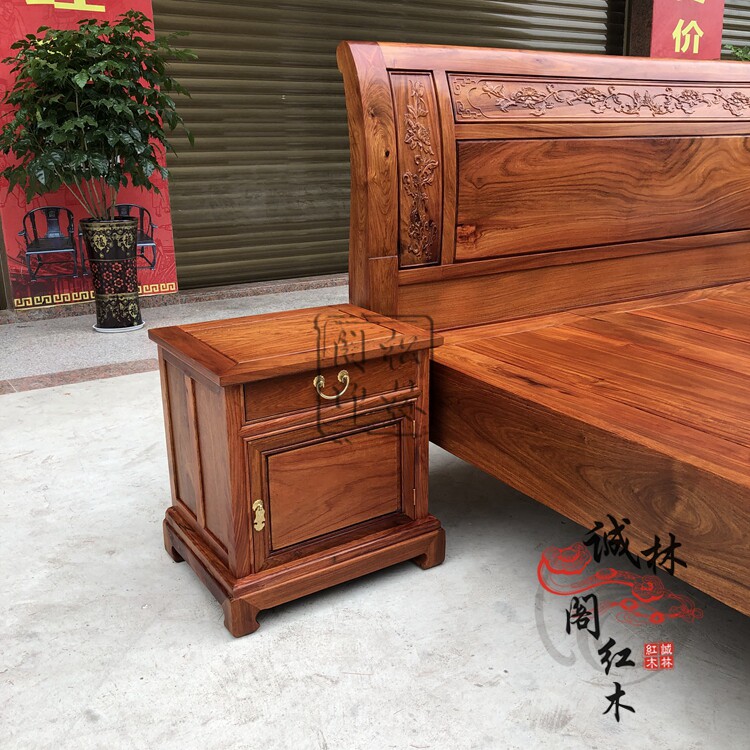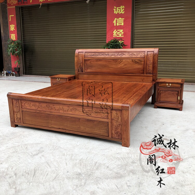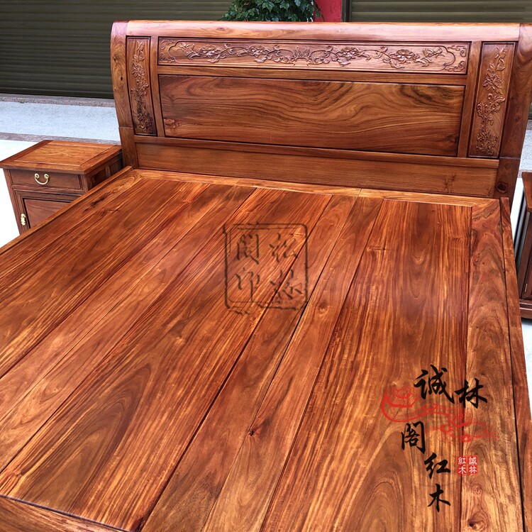 Redwood furniture Myanmar flower wood bed double bed 1 8m with bedside bedroom Chinese - style sandalbedroom combination