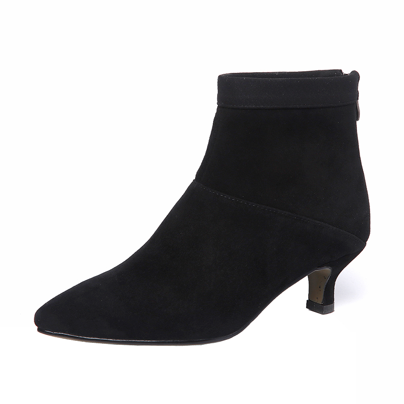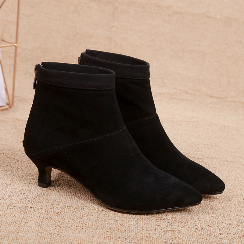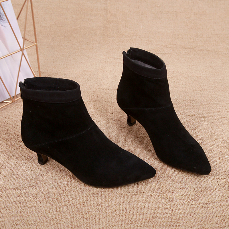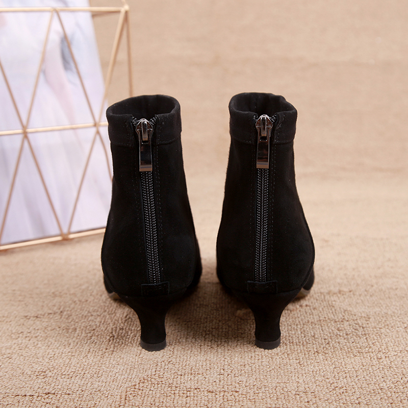 Europe station 2020 Winter new dermis slim heel Short boot heel Heel Pull Chain Naked Boots Frosted Martin Boots