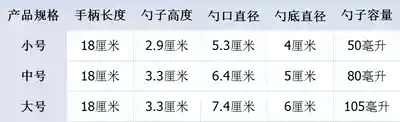 Small (capacity 50ML handle 18cm) Medium (capacity 80ML handle 18cm)Large (capacity 105ml handle 18cm)