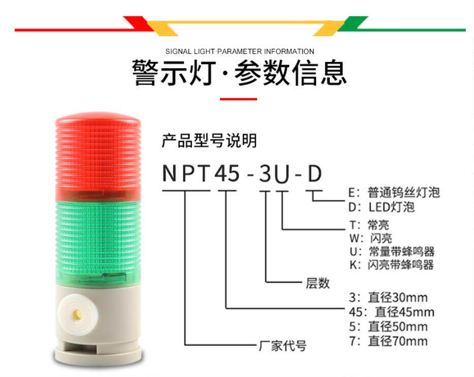 NPT45 NPT48-2T-D alarm light LED two-color indicator light is always on and silent machine tool light tower warning light