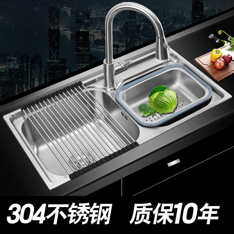 Kitchen 304 Stainless Steel Sink Pool Thickened Wire Drawing Wash Basin Double Sink Dishwashing Pool Wash Vegetable Pool Water Basin Double Trough Washbasin