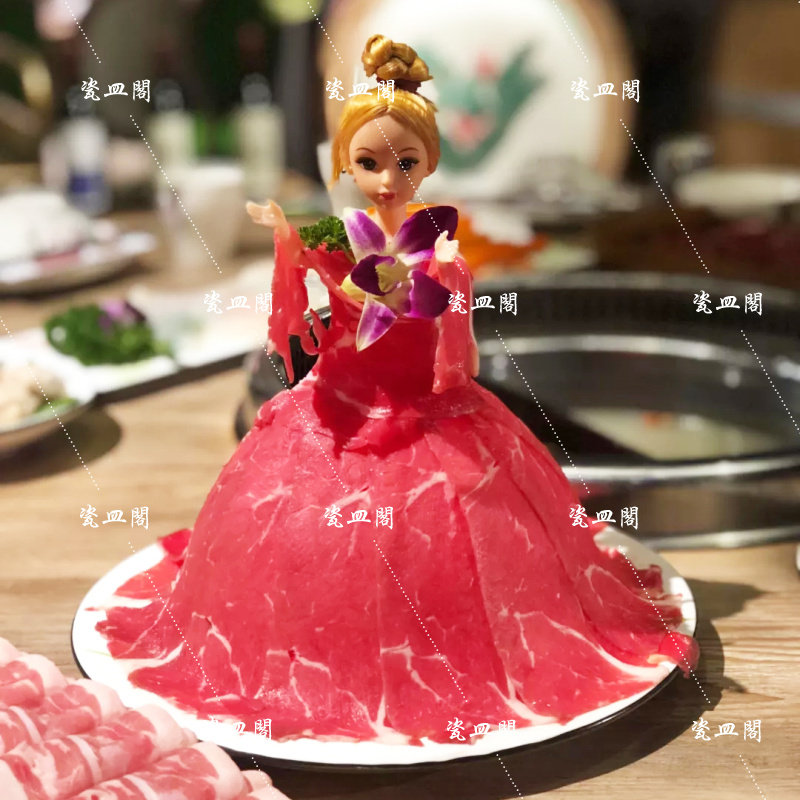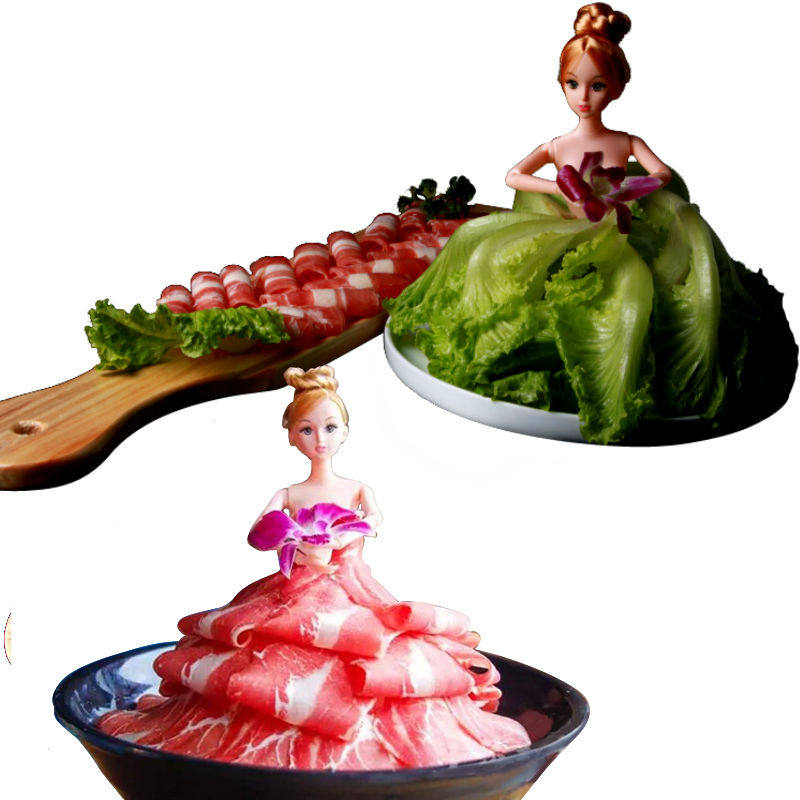 Barbie Meet Doll Fertility Hotel Tableware Roll Meat Barbie Roll Beef and Lamb Plate Featured Creative Sticking Plate