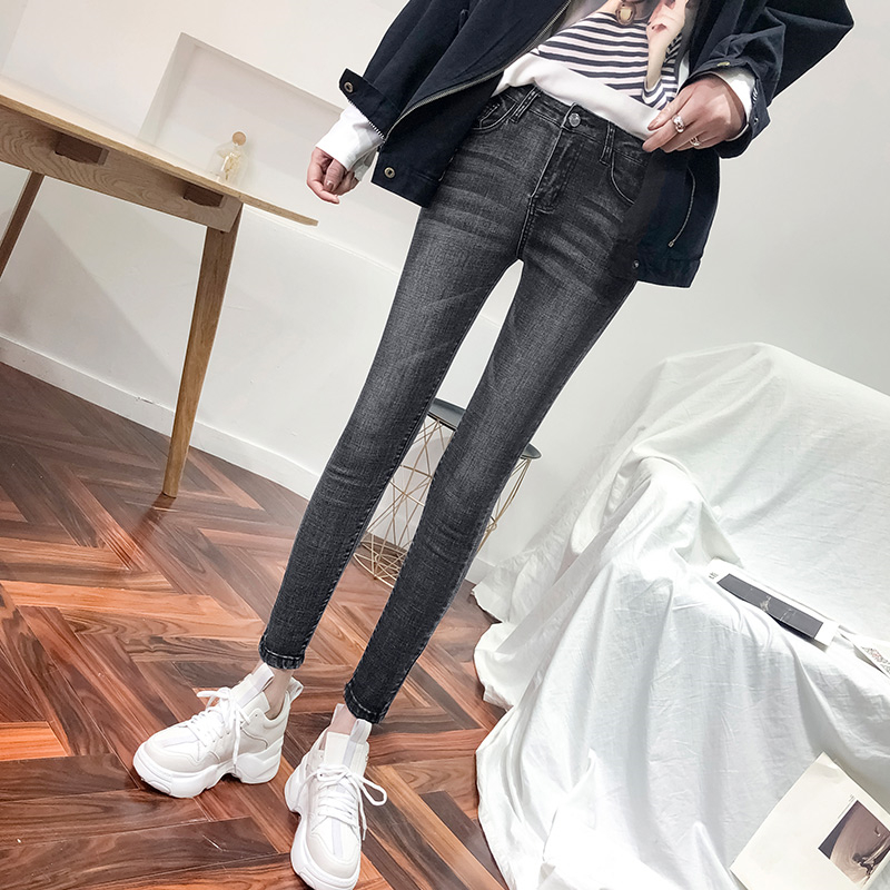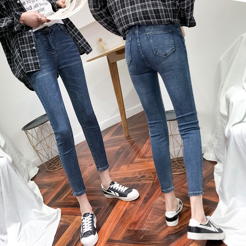 Women's high waist jeans spring and autumn 2021 new net red Korean version retro slim chic chic tight nine points feet