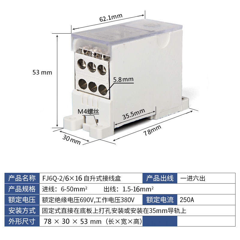FJ6Q-2 6 x 16 Self-promoted wiring terminals