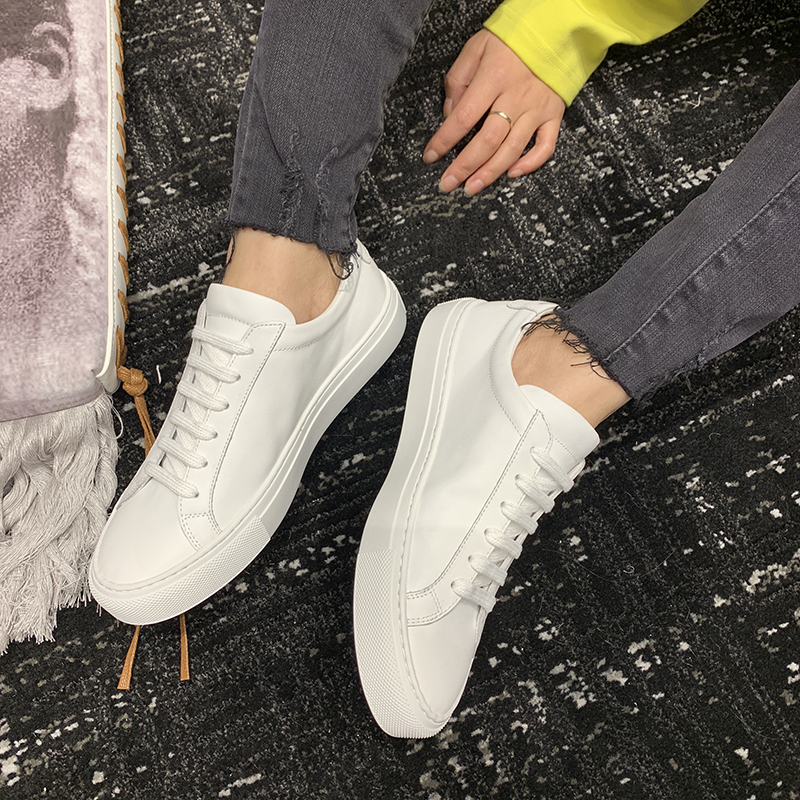 Zhu Xiaomeng's new common white shoes women's soft leather Joker flat shoes thick bottom with skirt Korean shoes