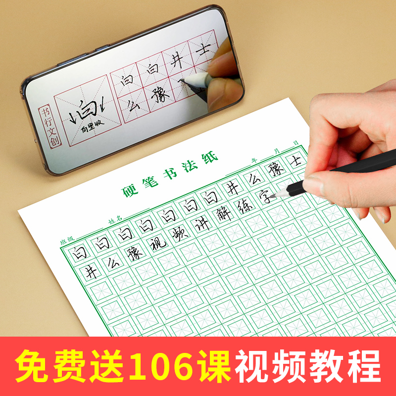 (Book line) thick rice back grid hard pen calligraphy Primary School students special writing paper calligraphy paper Hui Gong MiG character book first grade children adult meter character book Chinese character book Ben Mi Gongge Green