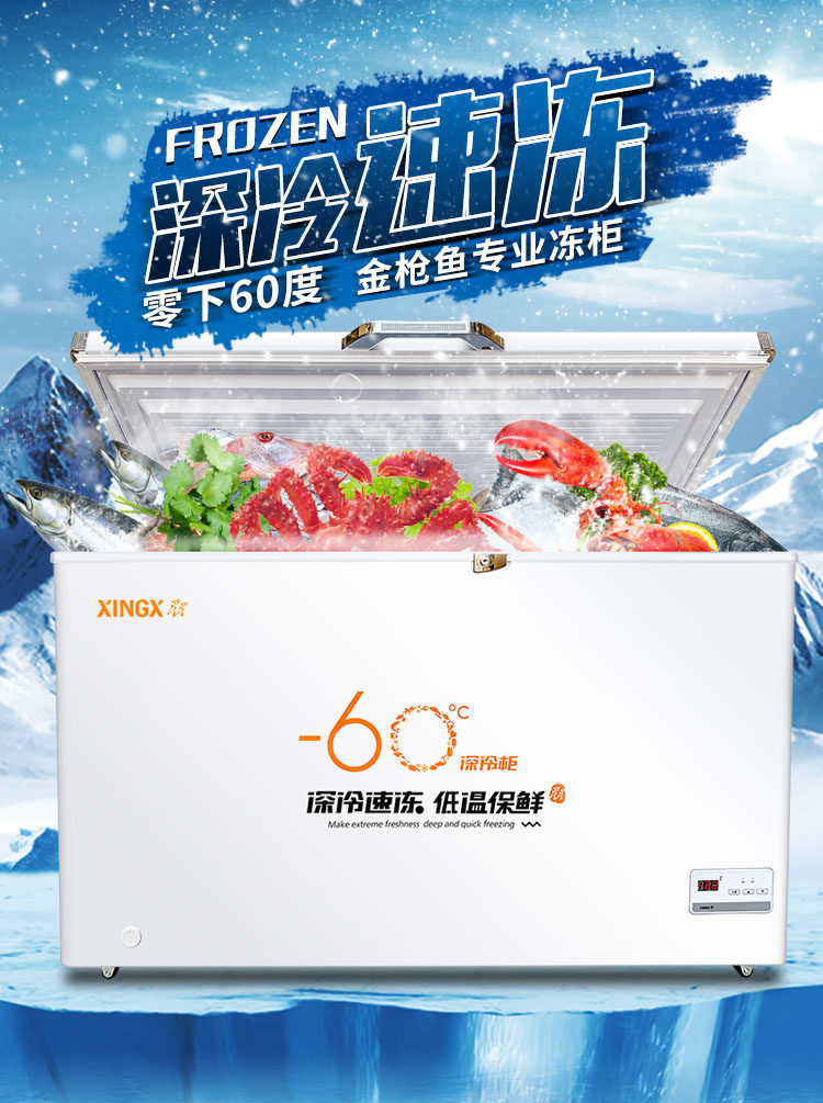 Star 518 liter freezer commercial ultra-low temperature freezing -60 degrees freezing freezer - 40 degrees deep freezing seafood cabinet