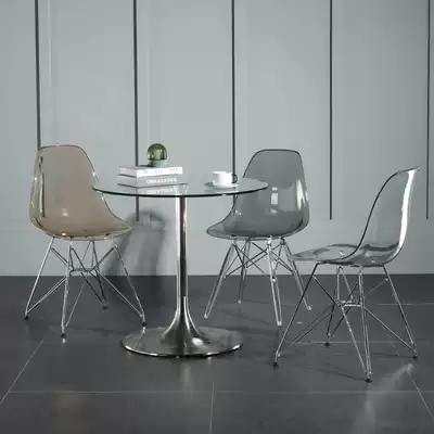 Simple transparent dining chair plastic chair without armrests Crystal Chair Nordic creative backrest Net red makeup stool negotiation chair
