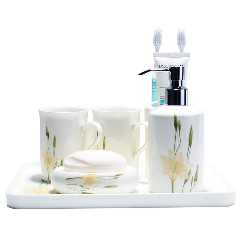 Section A yellow lily wash cup B with yellow lily wash cup yellow lily toothbrush barrel A yellow lily soap liquid bottle B with yellow lily soap liquid bottle A yellow lily soap case B Yellow Lily Soap Case