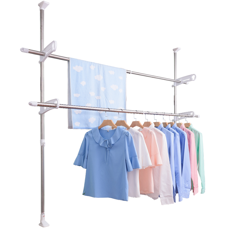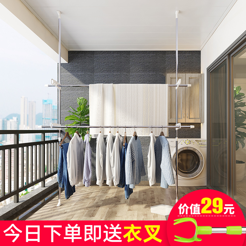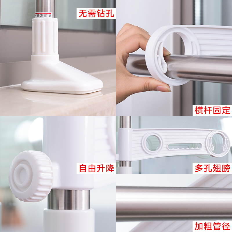 Windowsill hole-free stainless steel drying rack Top of the sky Bay window balcony drying rack Window telescopic drying rod