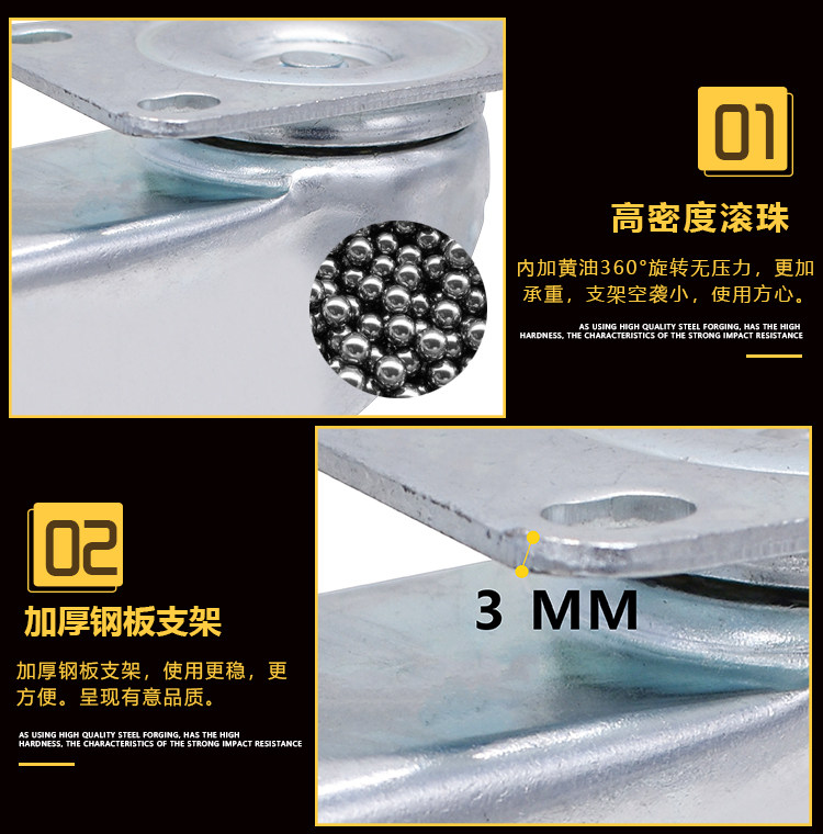 Side brake 3 inch horizontal adjustment wheel forhorse foot wheel with support foot cup integrated composite trundle universal wheel wheel