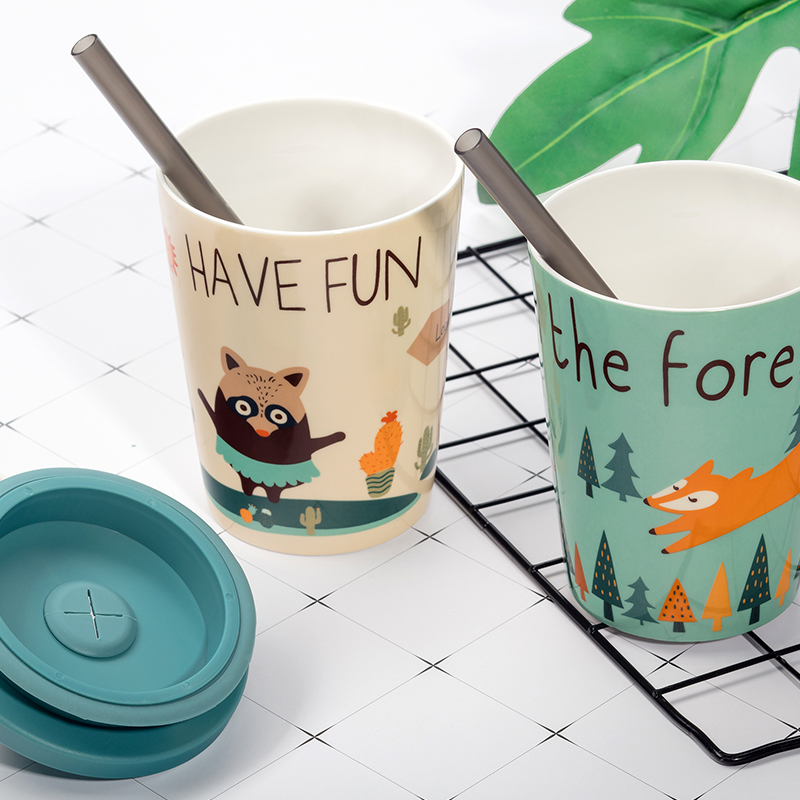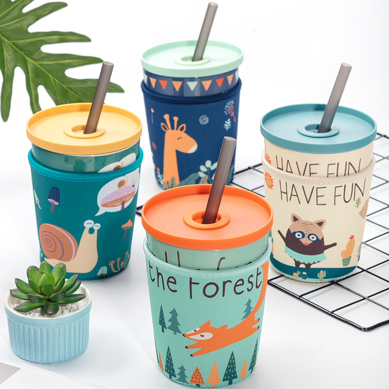 (Buy 1 send 3) Red Fox 680ml-Cup cover 304 straw straw (Buy 1 delivered 3) raccoon 680ml-Cup sleeve 304 straw straw (Buy 1 delivered 3) Chaidog
