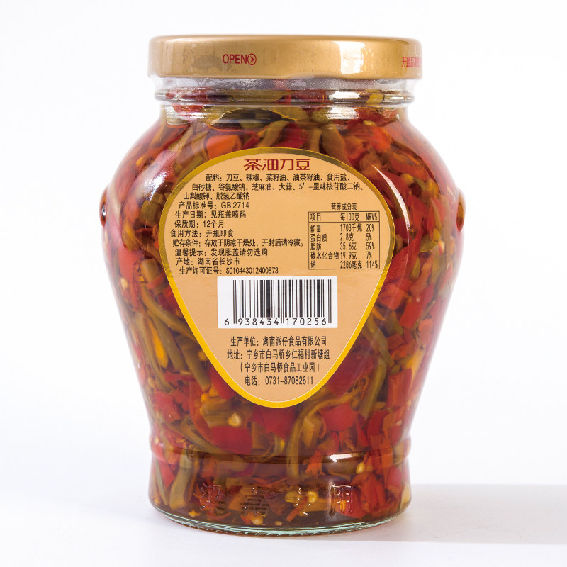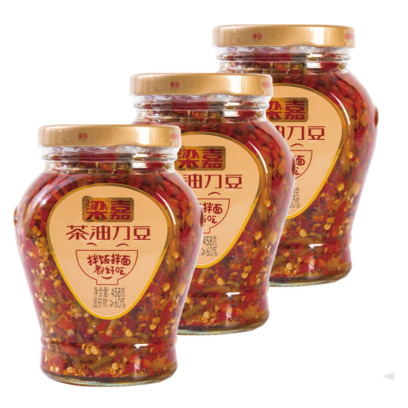 Hunan specialty Liangjia Camellia oil knife beans Liuyang pepper flavored meals 458g*3 bottles pickled spicy bibimbap dishes