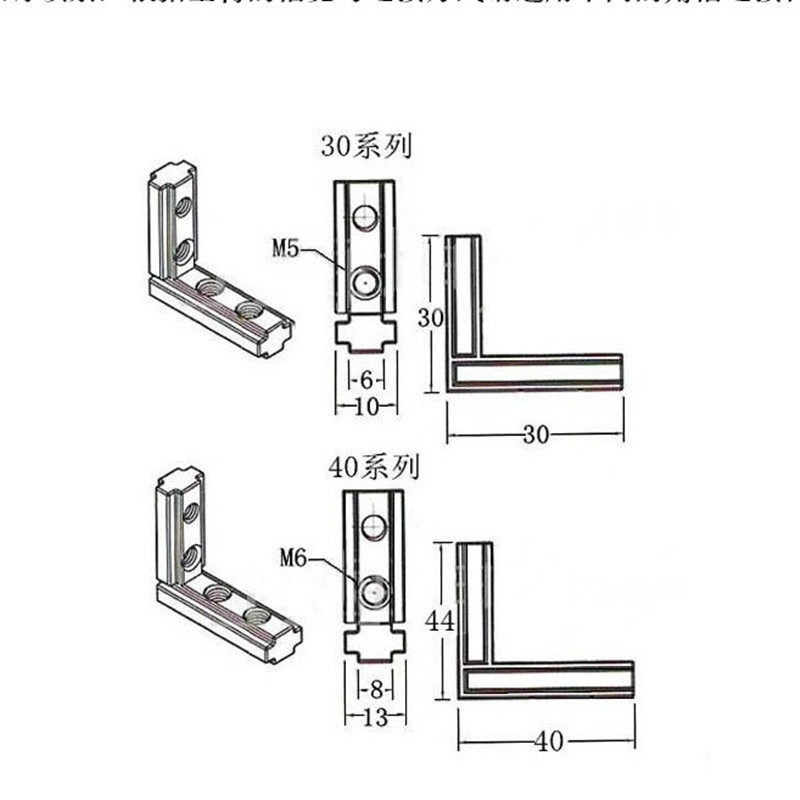 Aluminum profile parts corner connector with the corner of the aluminum L type European standard 1530 door and window accessories 45 degree angle