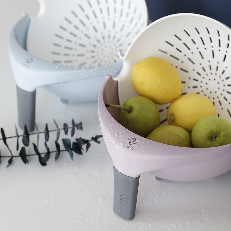 Tesell Home Kitchen Wash drain basket Split Double Plastic Living Room Fruit Pan With Handle Naughty Rice Basin