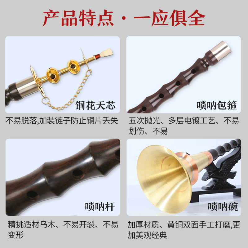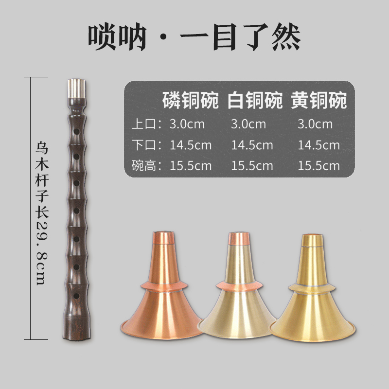 Hongyi Fengming Gansu No Dingtuning Local Umu Wooden Suona Brass White Bronze Phosphorus Copper Bowl Average Hole Suona musical instrument