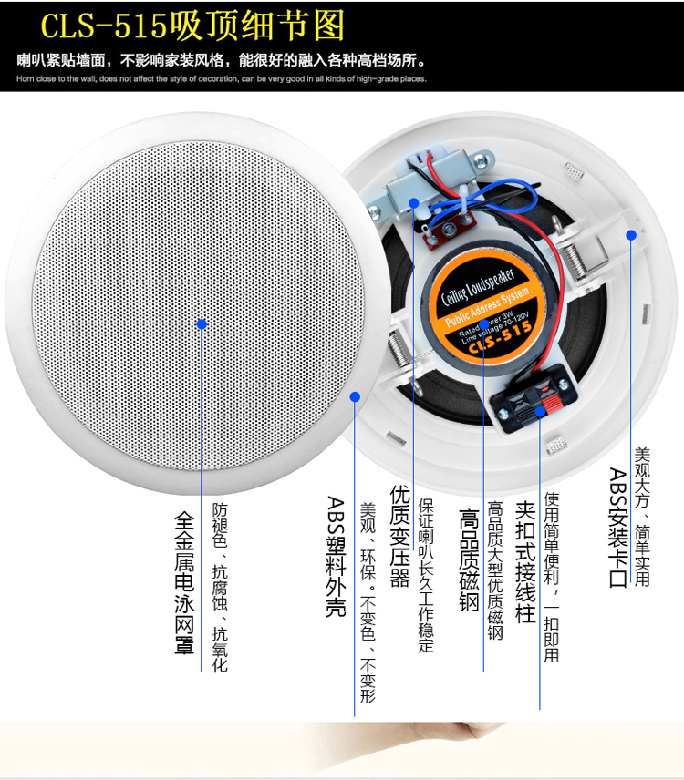 5 inch 3W ceiling drilling 140-165mm5 inch 6w ceiling drilling 150-165mm6 inch 6W ceiling drilling 165-185mm surface mounted ceiling speaker hanging ball suction