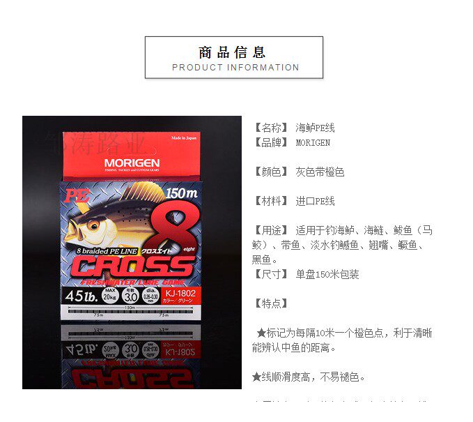 Japan imported MORIGEN MORIGEN 8 series blue powder gray green multicolored PE line Light weight, smooth, wear-resistant, non-absorbent