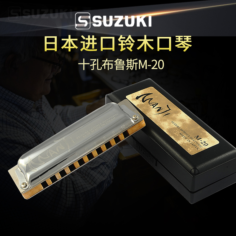 SUZUKI Suzuki ten holes Blue tone harmonica harmonica 10 holes Mug blues M-20 Adult beginner harmonica musical instrument