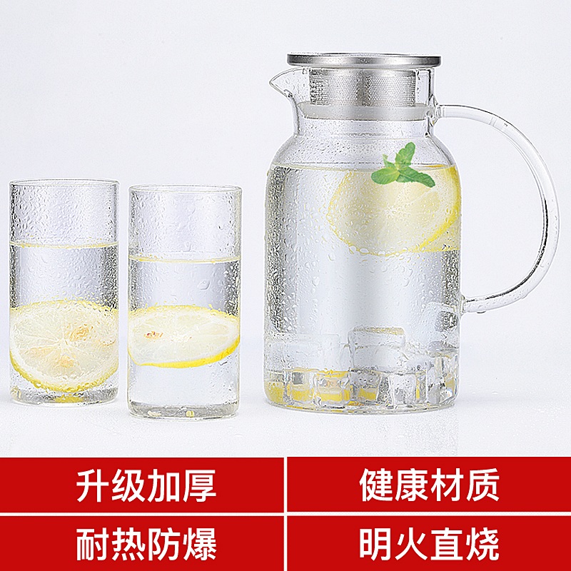 Cold water pot Glass cold water pot Large capacity tea pot Explosion-proof heat-resistant household high temperature cold plain water cup set