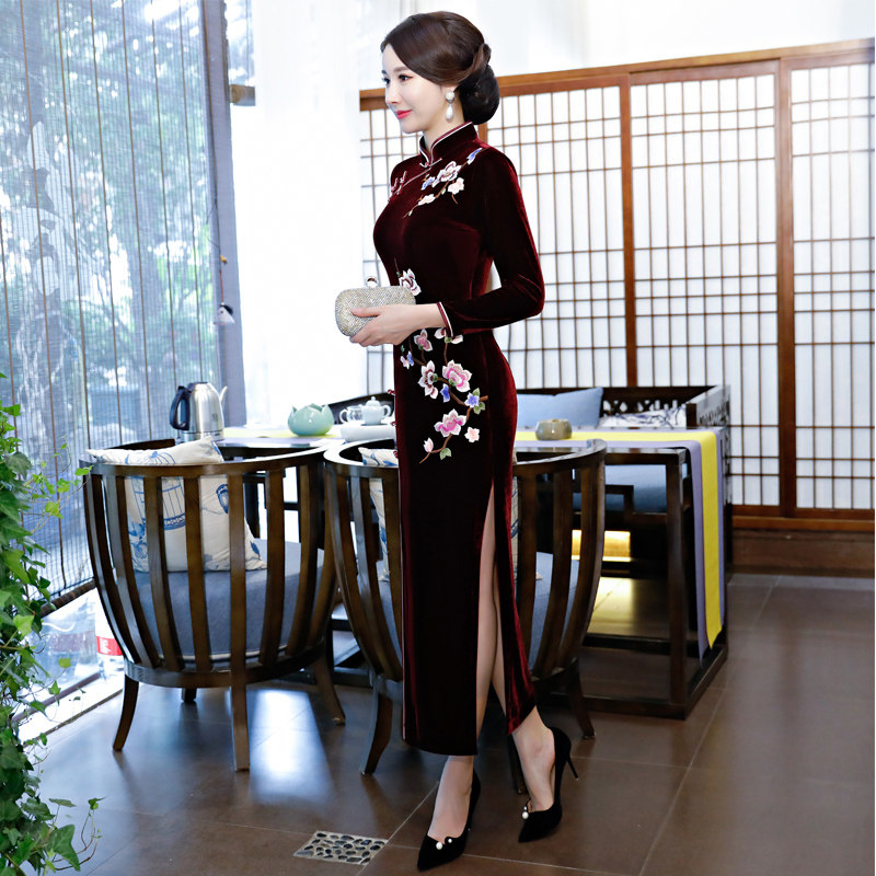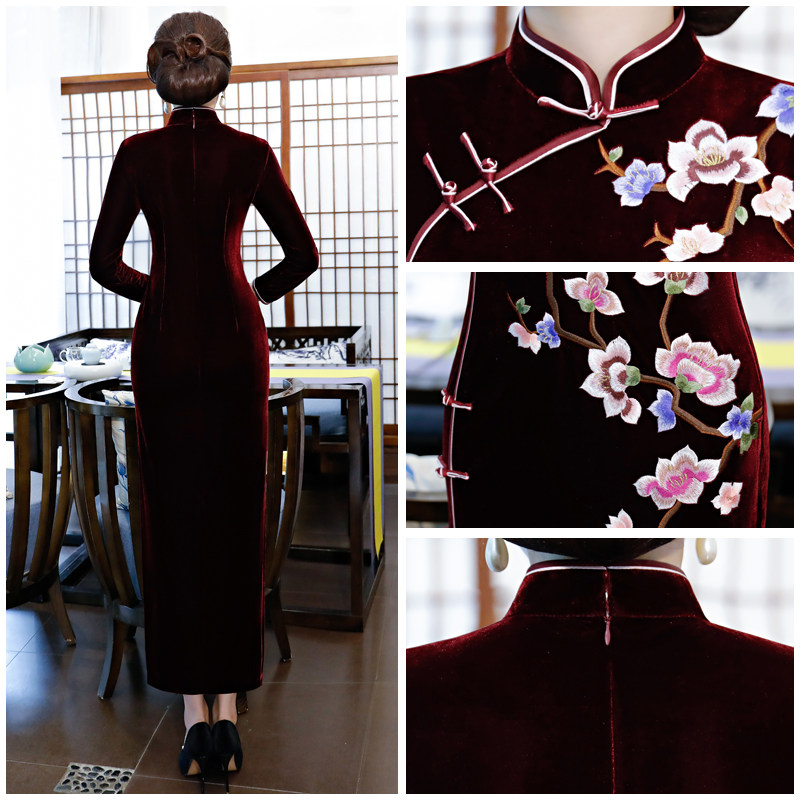 Velvet cheongsam improved 2022 new long-sleeved noble autumn dress middle-aged and elderly gold velvet dress mother wedding dress