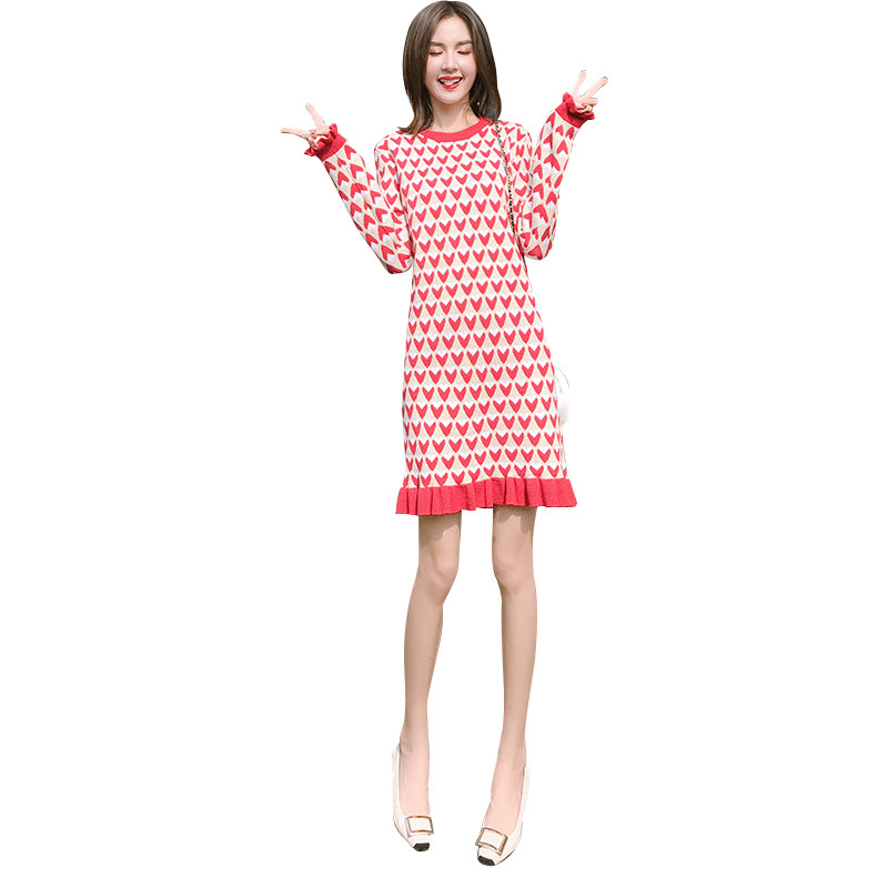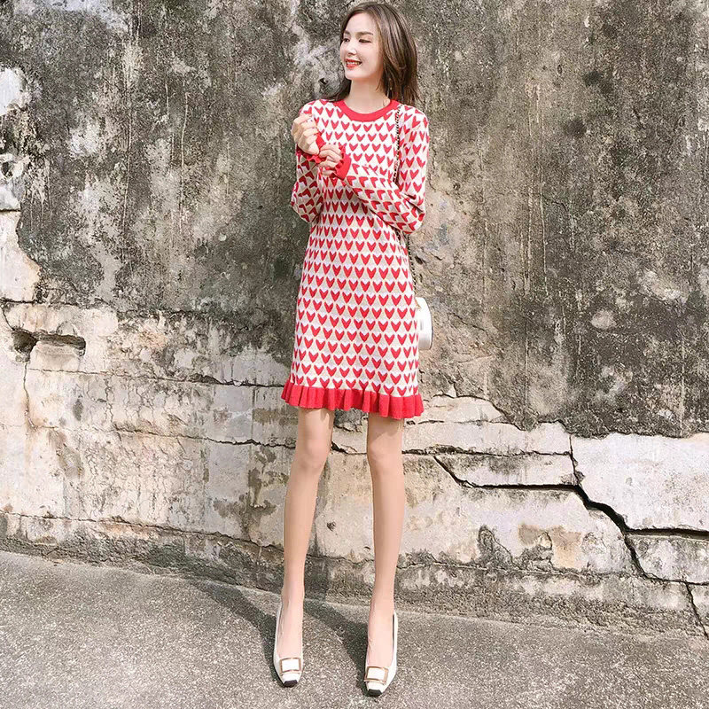 Knitted Ocean Dress Winter Clothing 2020 New Women's Dress Red Undershirt Christmas Dress Children Deserve a Winter Dress