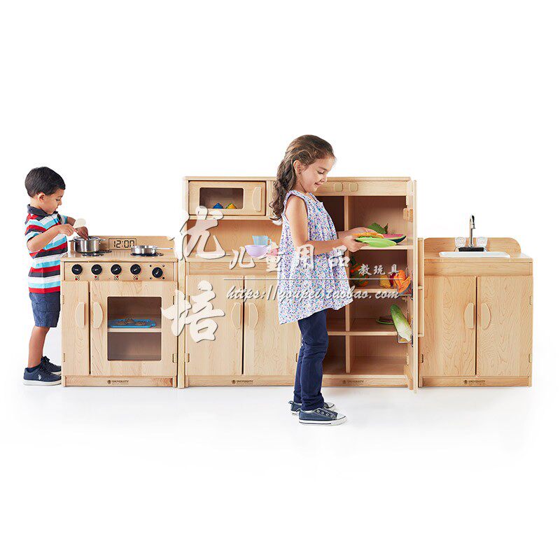 Early childhood Early teaching garden children role-playing kitchen cabinet set microwave integral cupboard-North American maple birch wood multi-laminate