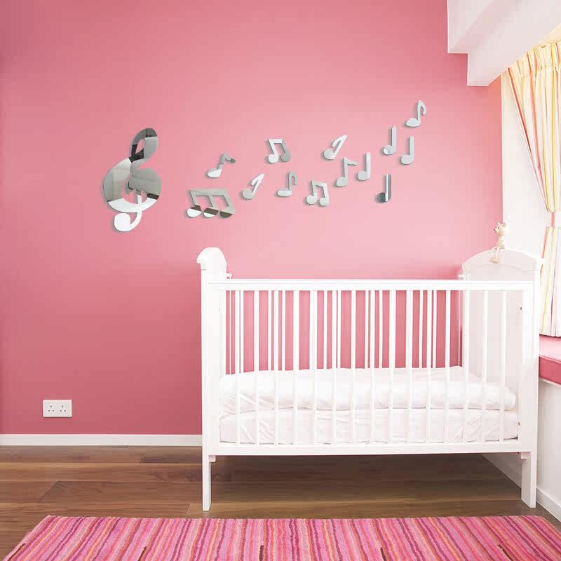 Music symbol 3d Solid acrylic mirror face wall sticker Kindergarten bedroom dance room Children's room note decoration