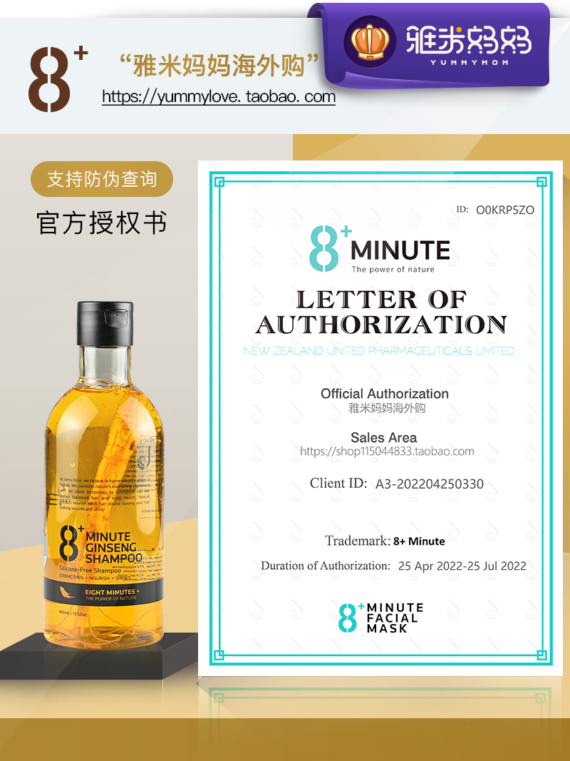 ㊣New Zealand 8-minute ginseng shampoo anti-hair loss Australian eight-minute essence without silicone oil to nourish hair roots