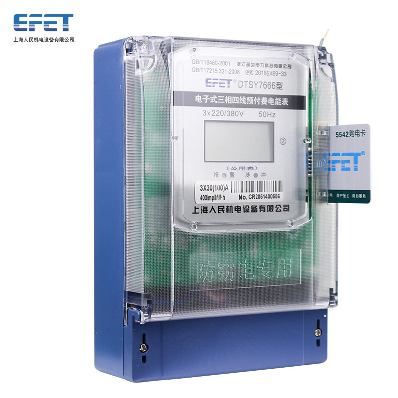 Shanghai People's DTSY7666 three-phase four-wire 380v-card public electric meter prepaid electric meter A table of many households